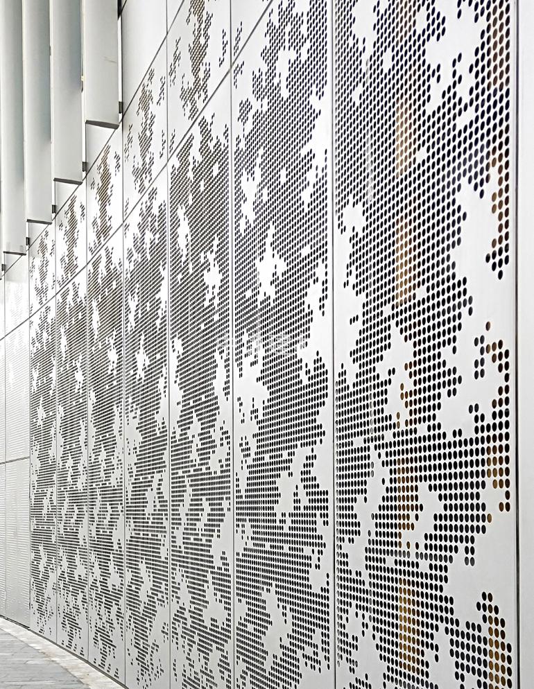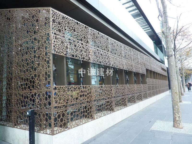 外墻裝飾網(wǎng)采用的是鋁合金板或鋁板為底材,通過模具加工沖壓加工而成,表面處理為陽極氧化或經(jīng)典粉末噴涂處理加工,菱形沖孔網(wǎng)是奧迪4s店指定外墻板產(chǎn)品,而奧迪4s店指定鋁單板的要求板材厚度為2.0mm,孔型規(guī)格為25*60mm蜂窩孔(也稱六角孔,菱形孔)而它的標(biāo)準(zhǔn)外型尺寸是525*2000mm,630*2400mm梯形穿孔鋁板,特殊尺寸會根據(jù)展廳的需求進(jìn)行定制。